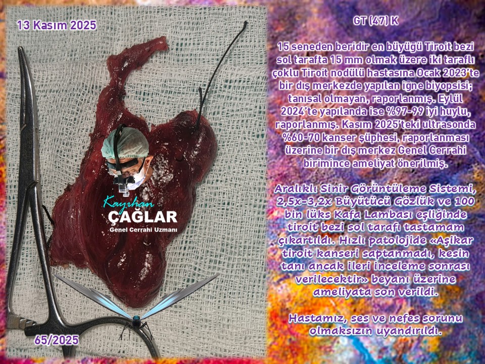 Kasım 2025 döneminde; 2025'in dokuzuncu Paratiroit ameliyatımızda sorumlu tutulan 2 adet Paratiroit bezi büyümesi (Çift Bez Hastalığı) çıkartılarak hastamızın şifa bulduğu toplamda dokuz Tiroit / Paratiroit ameliyatı gerçekleştirdik.