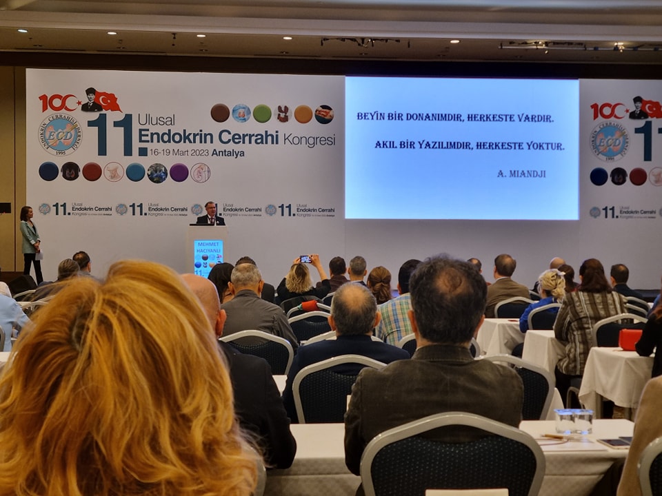 Başı dumanlı Torosları aşıp 11. Ulusal Endokrin Cerrahi Kongresi'nin Oturum Başkanlıklarını ve sunumlarını tiroit ve paratiroit cerrahisinde şahsıma el veren, halen de katkısı devam eden Kıymetli Hocam Prof. Dr. Adnan İşgör (Şişli Memorial Hastanesi) ve Değerli Kıdemlim Prof. Dr. Mehmet ULUDAĞ'ın (Şişli Hamidiye Etfal Eği. ve Araş. Hastanesi) yaptığı açılışa özel İntraoperatif Sinir Görüntüleme Kursuna yetişmiş olduk. Görüşediğimiz 4 sene, Allah nazardan saklasın ki Adnan Hocam'ın lehine geçmiş.