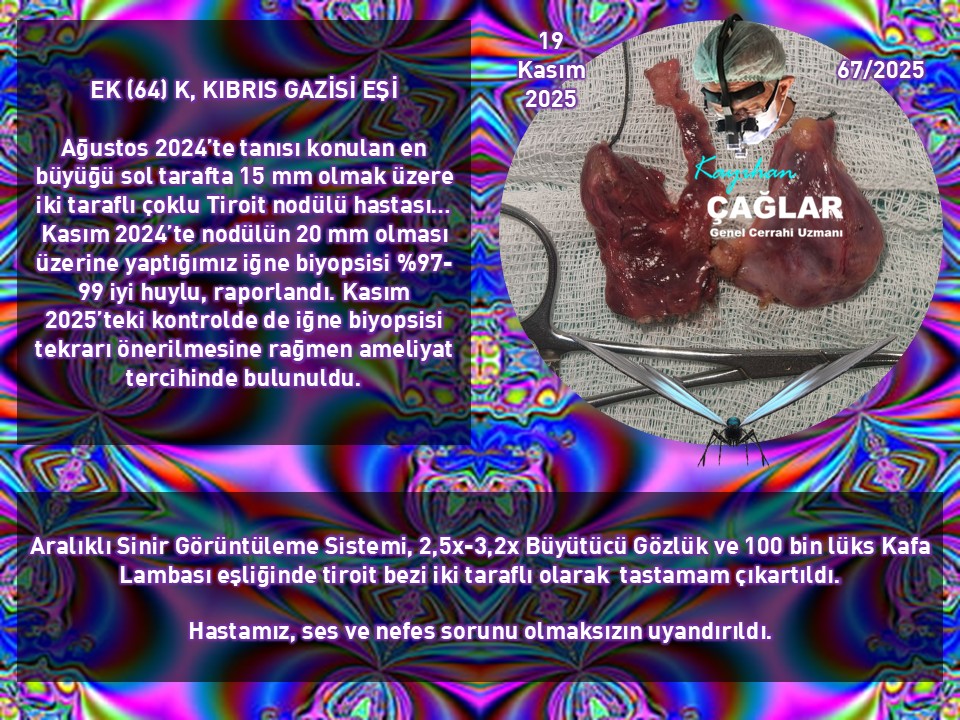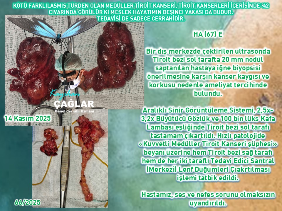 Kasım 2025 döneminde; 2025'in dokuzuncu Paratiroit ameliyatımızda sorumlu tutulan 2 adet Paratiroit bezi büyümesi (Çift Bez Hastalığı) çıkartılarak hastamızın şifa bulduğu toplamda dokuz Tiroit / Paratiroit ameliyatı gerçekleştirdik.
